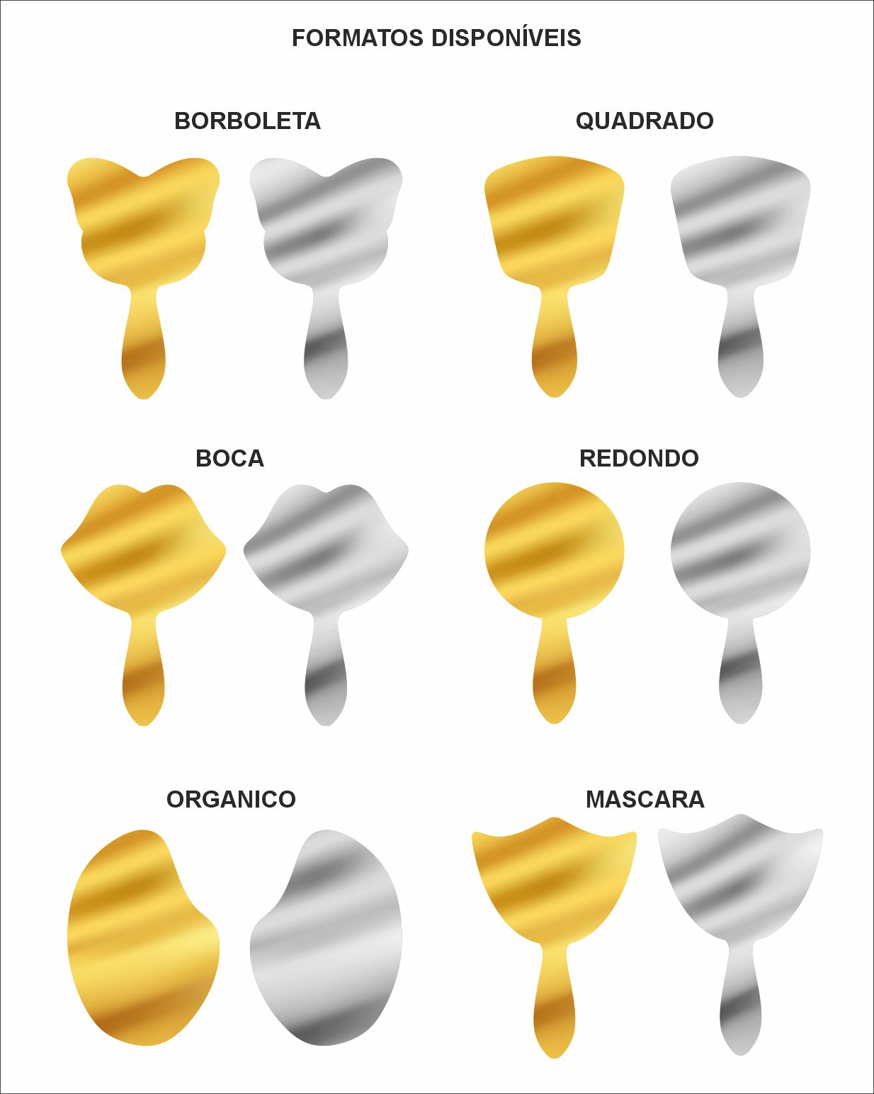 Cores: Costas a Escolha personalizado com impressão UV + Espelho a Frente.