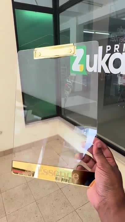 Procurando aquela prancheta personalizada com sua logo? Então você precisa da nossa Prancheta em acrílico! Ideal para você deixar seu ambiente de trabalho mais organizado, com estilo e personalização. Nossa prancheta é feita em acrílico de 3mm e uma presilha dourada super resistente.