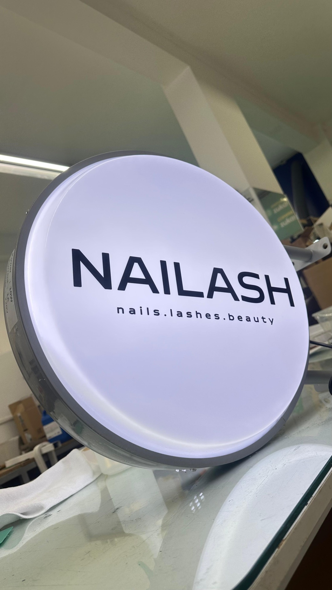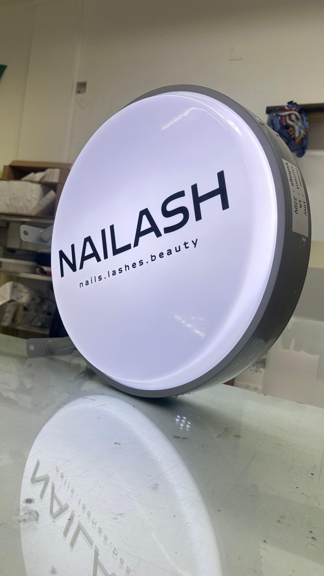 Material: Suporte em metal resistente, faces em acrílico com impressão da logo em vinil e iluminação led interna dupla face. Tamanho: 50cm.